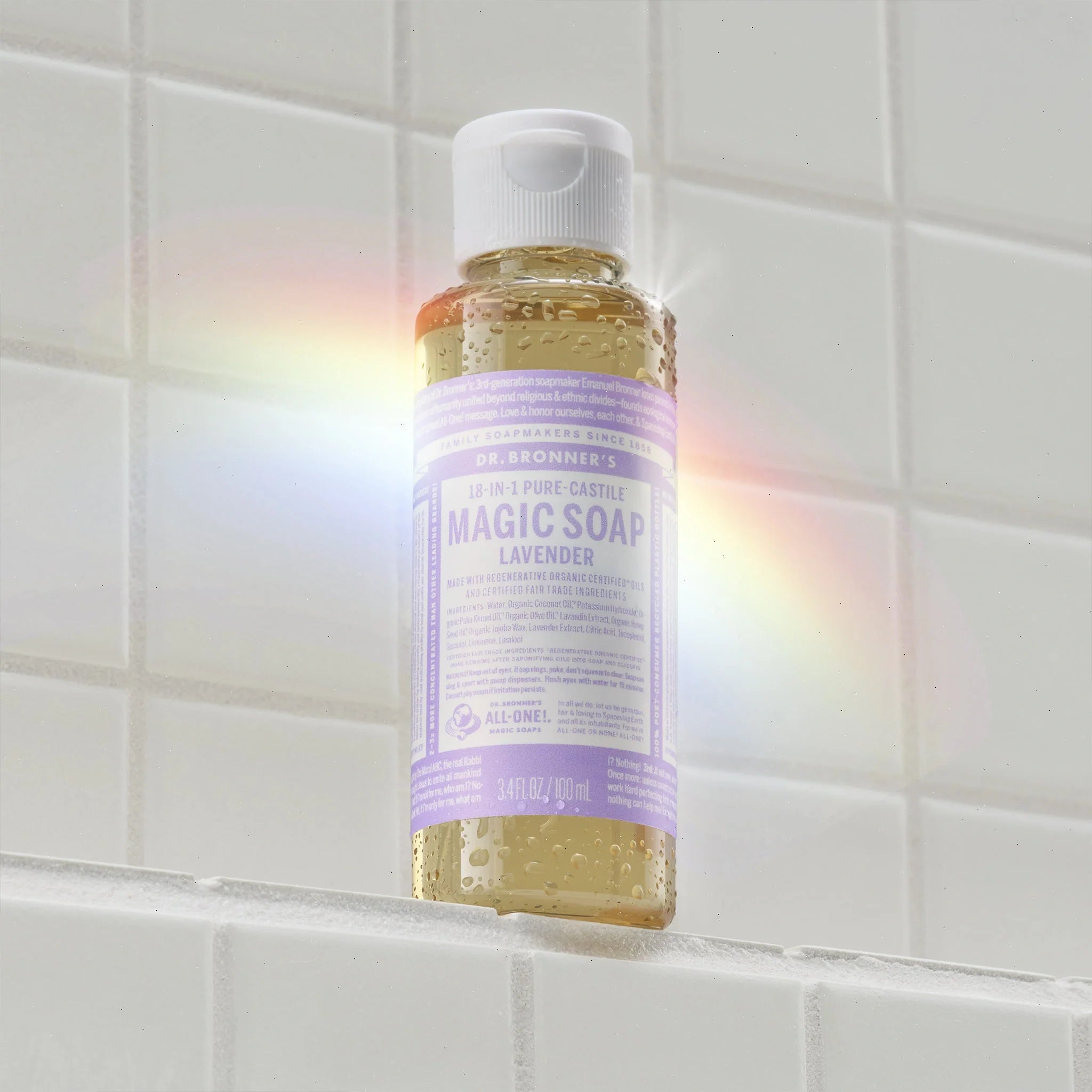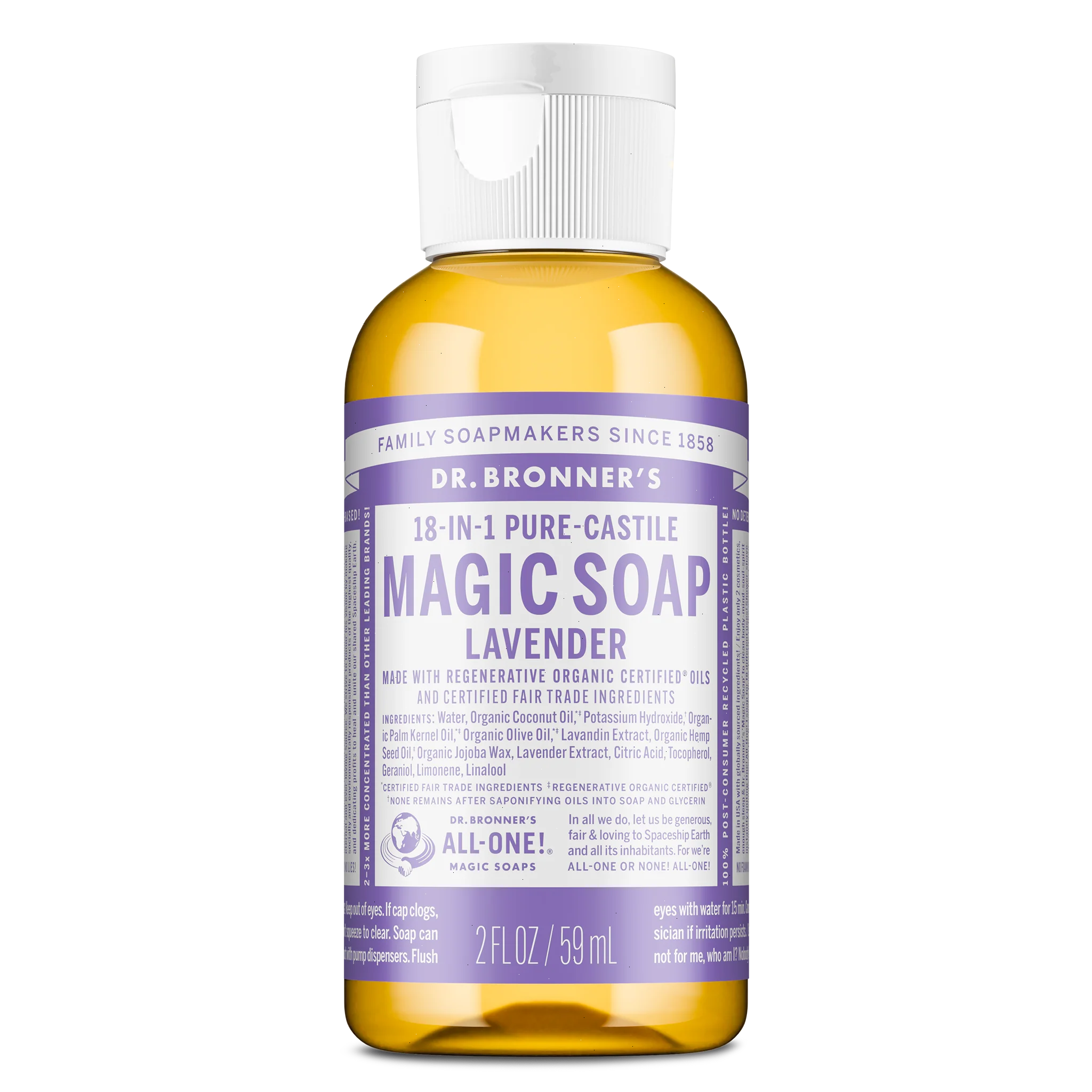 Relax and unwind with the calming scent of Dr. Bronner’s Lavender Liquid Soap. Infused with pure French lavender essential oil, this true soap creates a rich, smooth lather that rinses clean. Made with Regenerative Organic Certified® oils, it gently cleanses while filling the air with a soothing, genuine scent. No detergents, dyes, or added foaming agents. Vegan, made with organic oils, fair trade, and EWG Verified®—for a clean that renews body and soul.