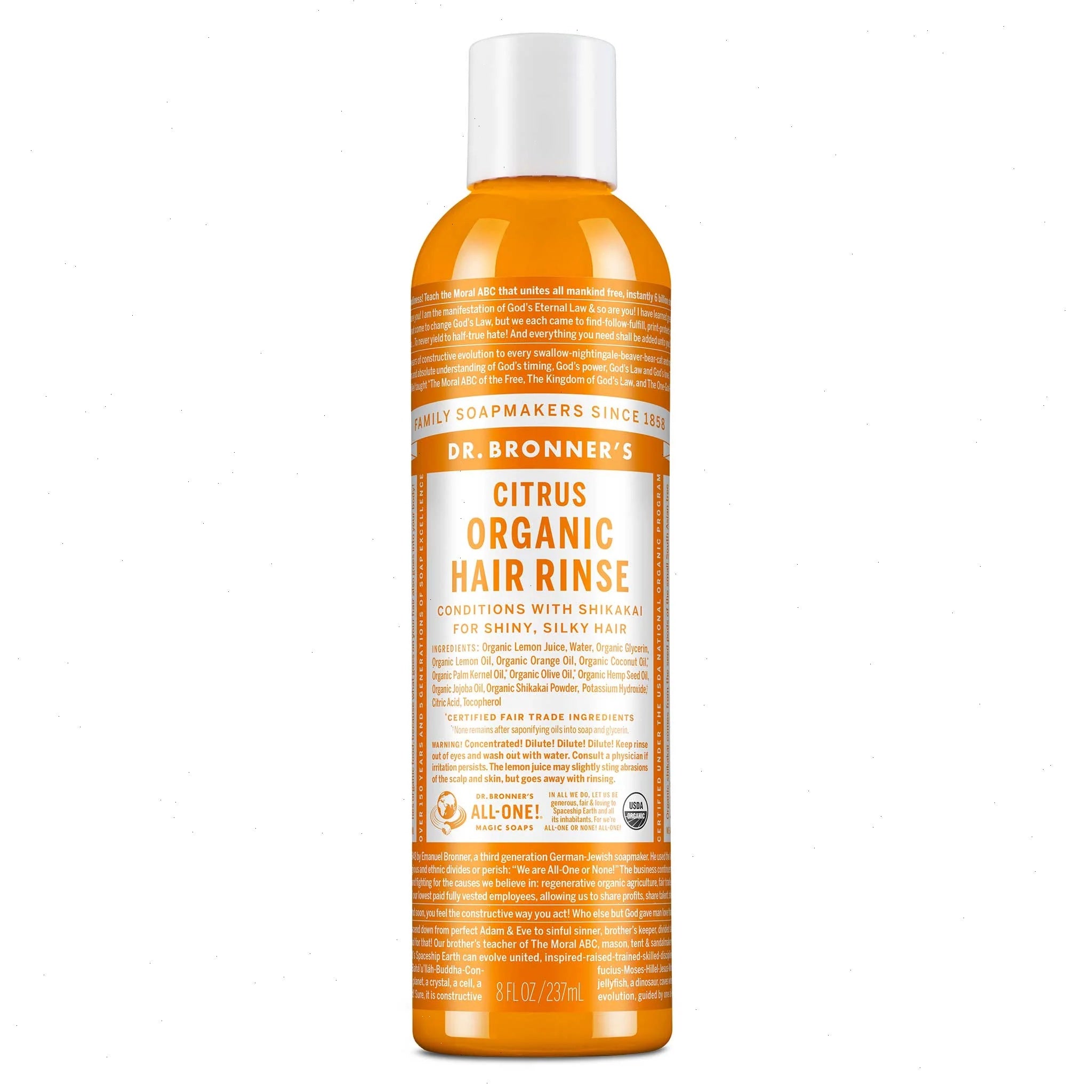 Dr. Bronner's Citrus Organic Hair Rinse is revitalizing and effective! Organic lemon juice rinses and tightens hair shafts for excellent manageability. Organic shikakai comes from the seed pods of the small South Asian tree Acacia Concinna and has been used for millennia in India as a gentle conditioning cleanser for both skin and hair. Organic coconut, olive and U.S.-grown hemp seed oils make hair feel silky smooth!
