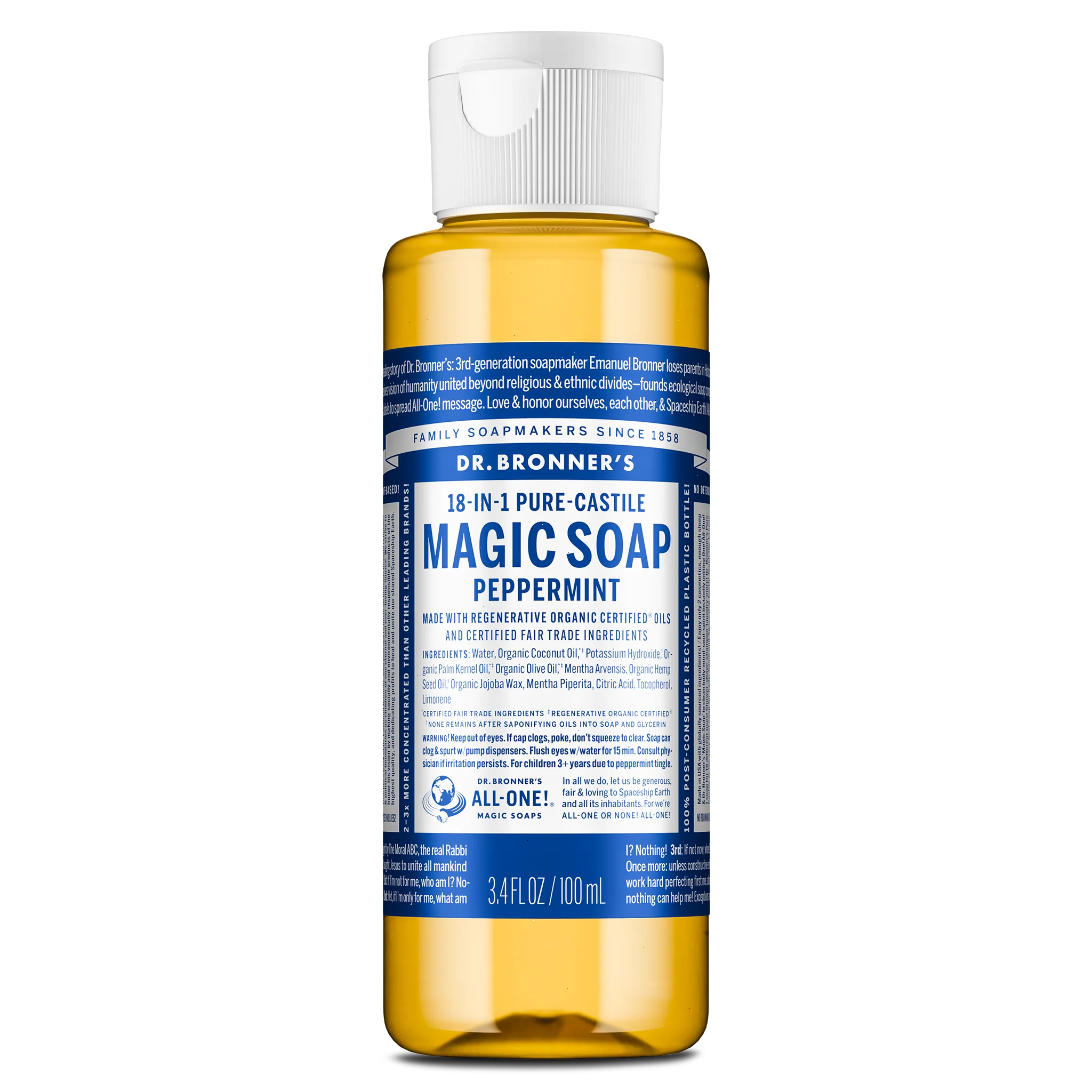 Dr. Bronner’s Peppermint Liquid Soap is scented with organic peppermint essential oil for a refreshing, clean feel that leaves skin feeling cool and awakens the senses. Made with a nourishing blend of Regenerative Organic Certified® oils, this true soap creates a rich, smooth lather that rinses clean—leaving skin feeling fresh and renewed. Great for everyday use, it’s crafted with ethically sourced, organic ingredients and contains no detergents, dyes, or added foaming agents. Vegan, made with organic oils, fair trade, and EWG Verified® for peace of mind—because caring for your body should also care for the planet!