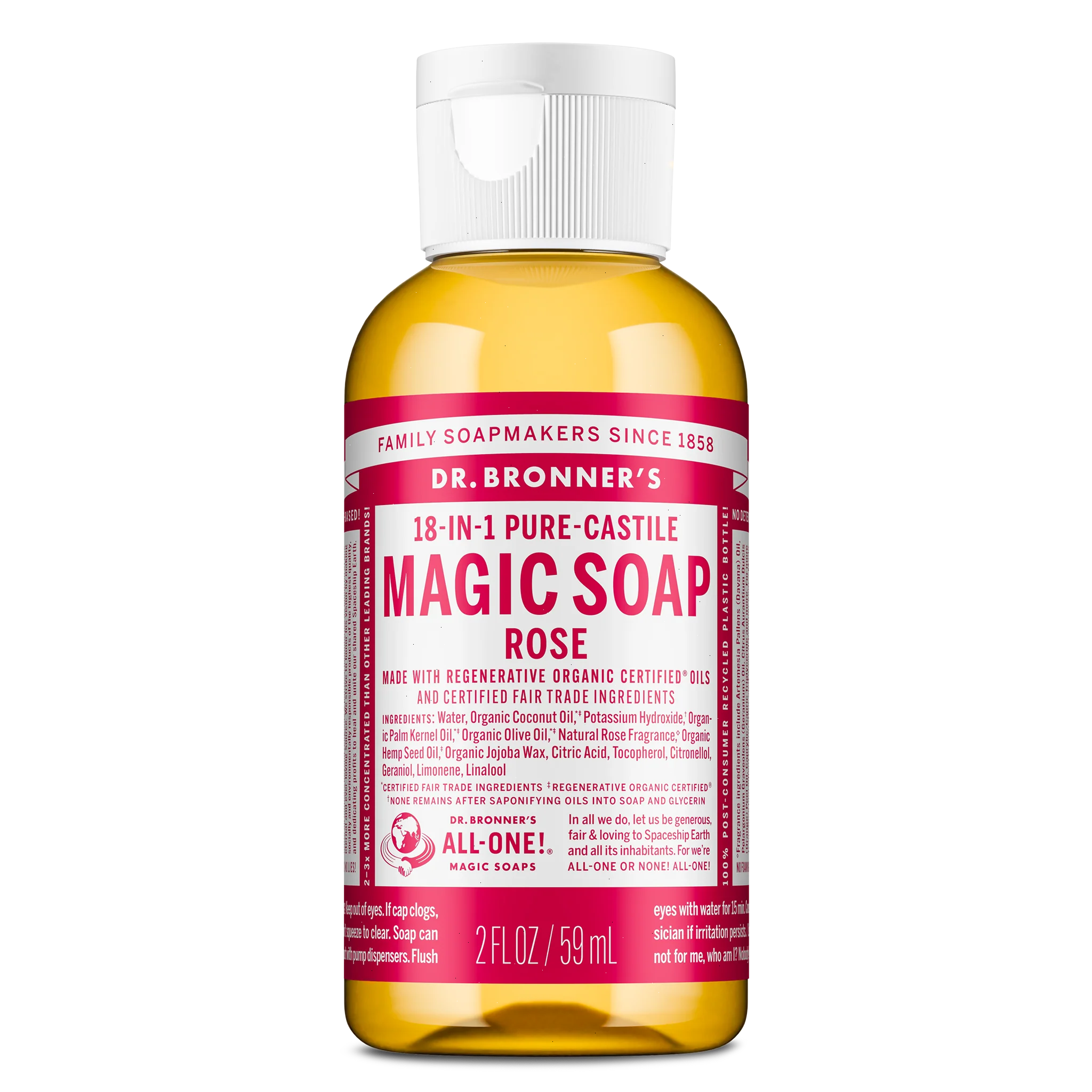 Indulge in the scent of fresh roses with Dr. Bronner’s Rose Liquid Soap. This true soap is infused with a high concentration of naturally derived rose fragrance, leaving skin feeling soft and refreshed. Made with Regenerative Organic Certified® oils, it creates a rich, luxurious lather that cleans while rinsing clean. Crafted with organic, ethically sourced ingredients—no detergents, dyes, or added foaming agents. Vegan, made with organic oils, fair trade, and EWG Verified®—shower with trust!